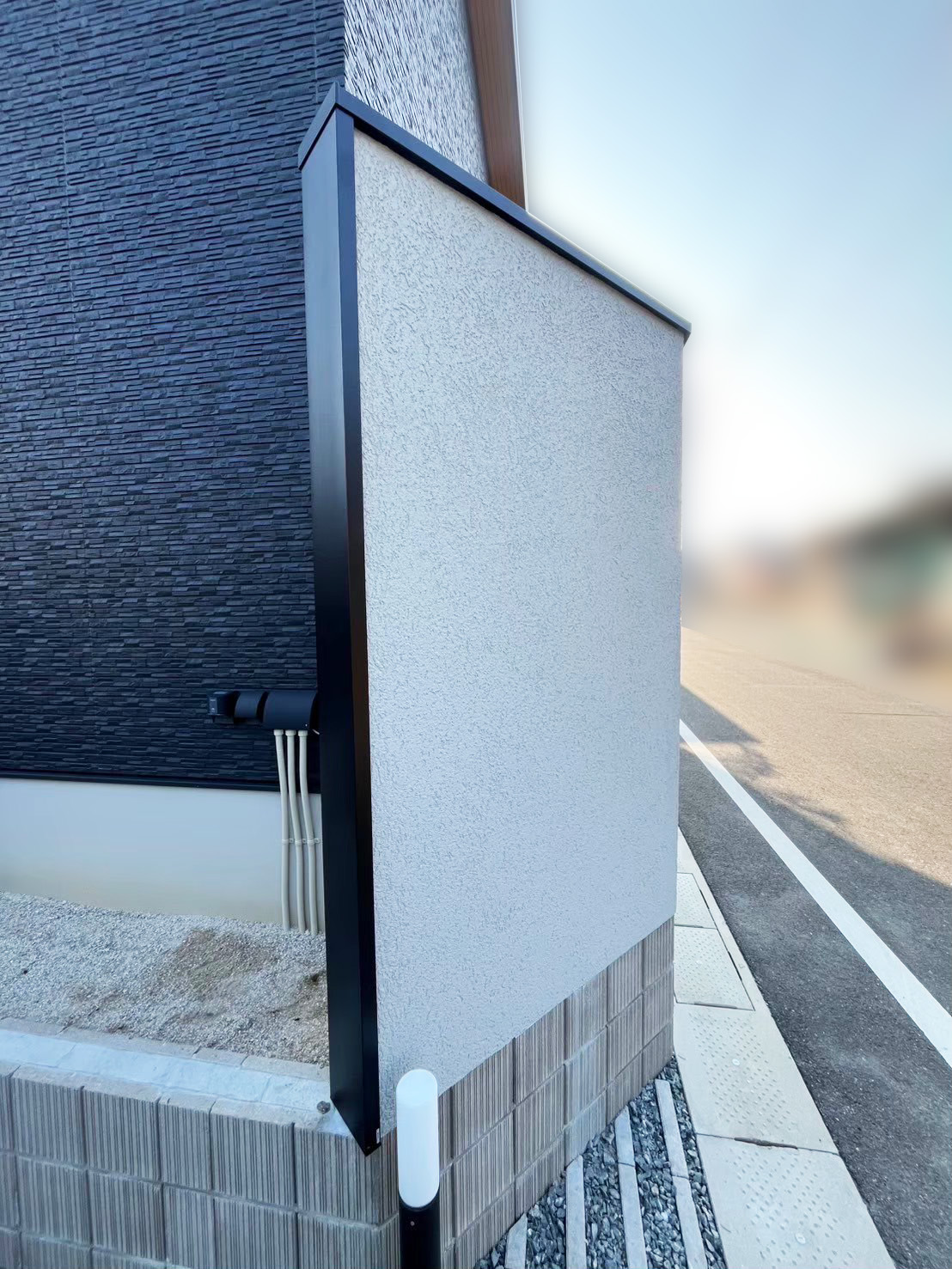 塀はクローズ外構だけではなく、このようにお家の一部分の目隠しとしても施工が可能です。